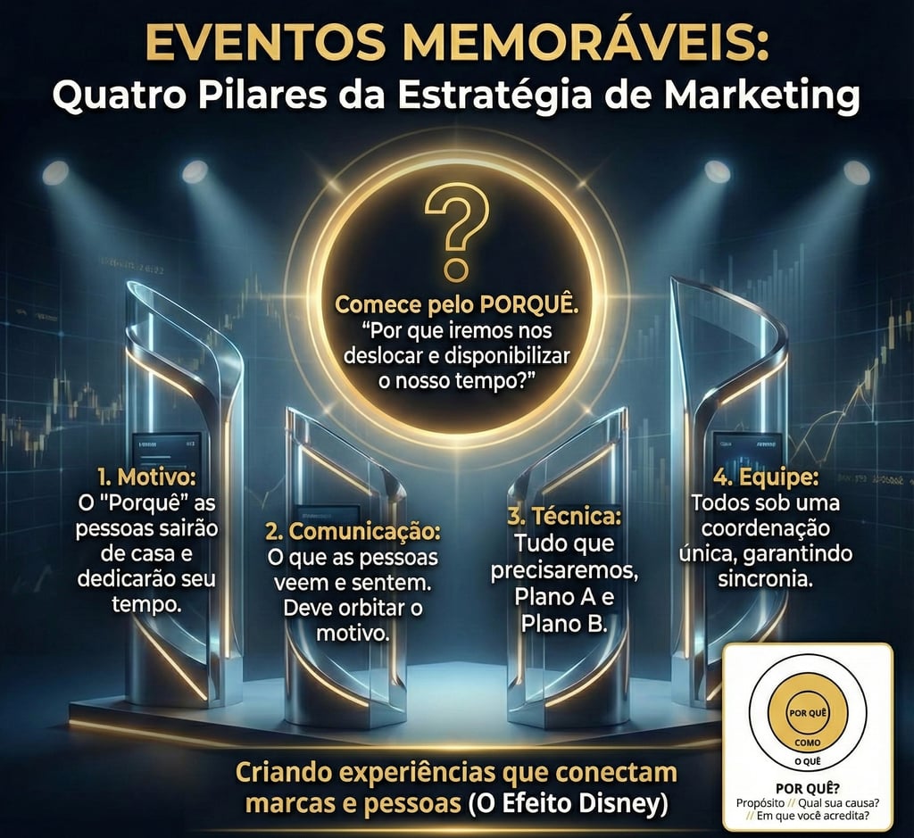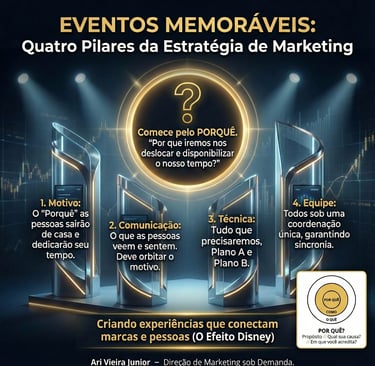 Transforme seus eventos de simples despesas em ferramentas de marketing estratégicas, começando pela pergunta crucial: "Por que iremos nos deslocar e disponibilizar o nosso tempo?",. Ari Vieira Junior, em sua nova jornada como **Diretor de Marketing sob Demanda**,, revela os **Quatro Pilares Inegociáveis** (Motivo, Comunicação, Técnica com Plano A/B e Equipe) que garantem a sincronia e o sucesso de qualquer ação,. Descubra como essa estratégia, marcada pela inovação e pela busca do **"Efeito Disney"**,, proporciona a **clareza e o foco** necessários para obter resultados reais. **Leia agora** e garanta que o propósito da sua marca seja o pilar de cada experiência criada!